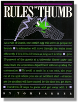 With this website, you have at your fingertips all the best rules of thumb I've collected since book number one plus everything voted into the Main Collection by online contributors like you. Each rule is followed by a source, or rumored source, or the name of the first person who sent it to me. The people listed are not necessarily claiming a rule of thumb as their own invention. A lot of contributors have sent in rules they heard from someone else. Many sent clippings or paraphrased another source. Some rules arrived as hearsay. Don't feel cheated if your mother's rule of thumb was sent in by an Italian psychologist from Nashville - your mother's rule is getting famous.